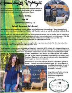 The Junior Ambassador Program is a year-long program where youth members apply to assist at shows and events. The program runs from April 1 to March 31, which is congruent with the Futurity Program and other youth activities. If you or your child would like to become an ambassador, please check back in January of 2026 for the 2026-2027 application.